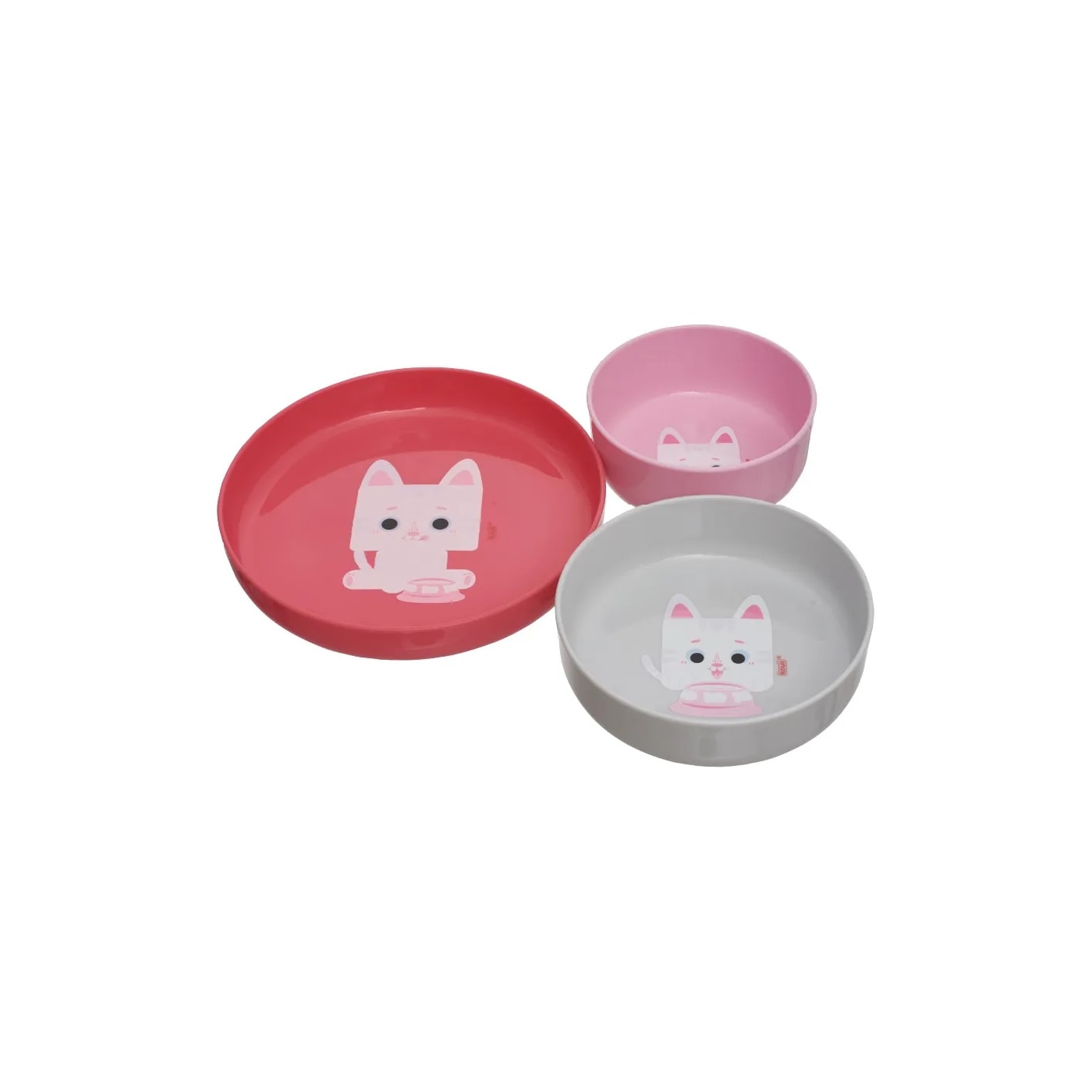 Kit 3 Pratos Infantis com Ventosa Antiderrapante Gato Mia Kouii