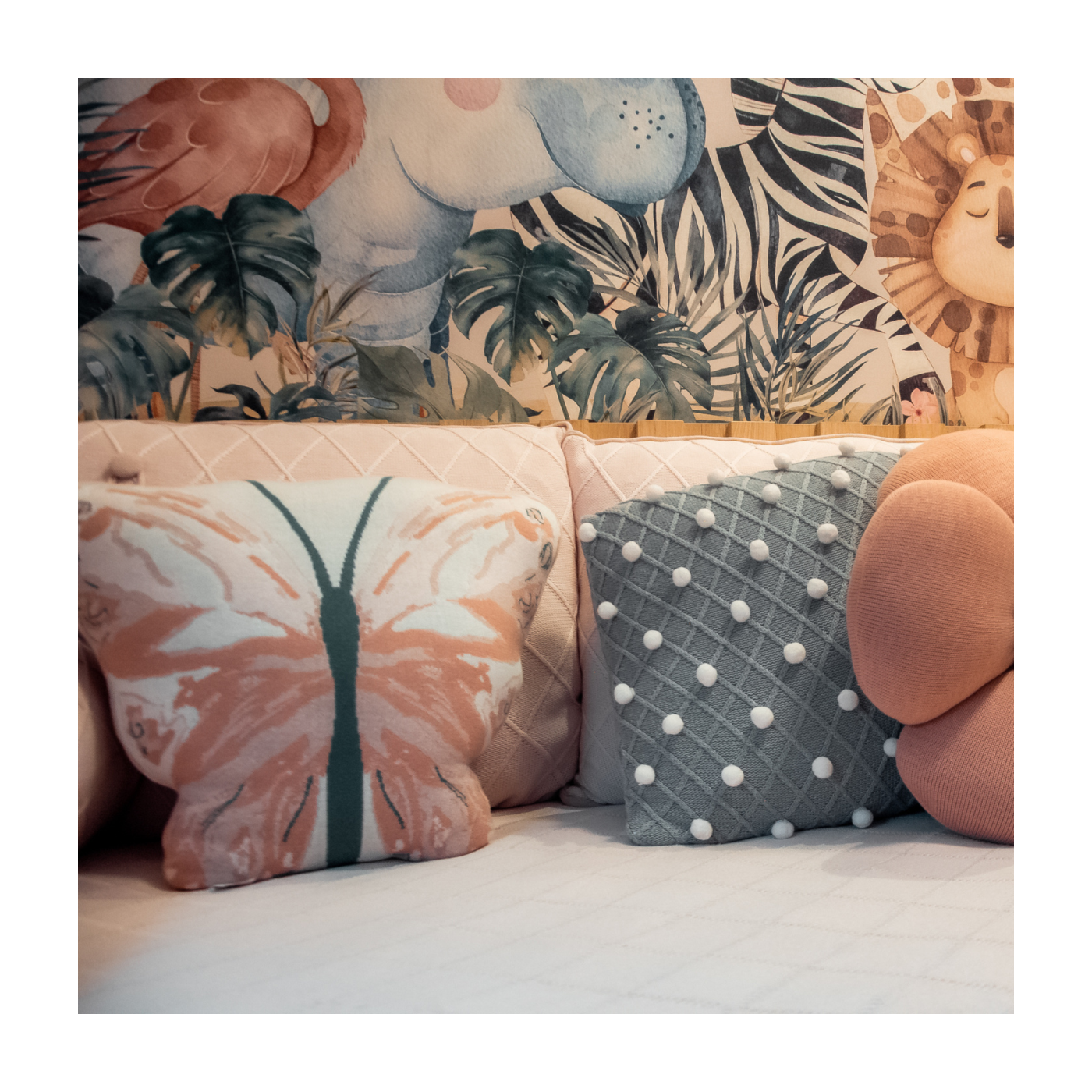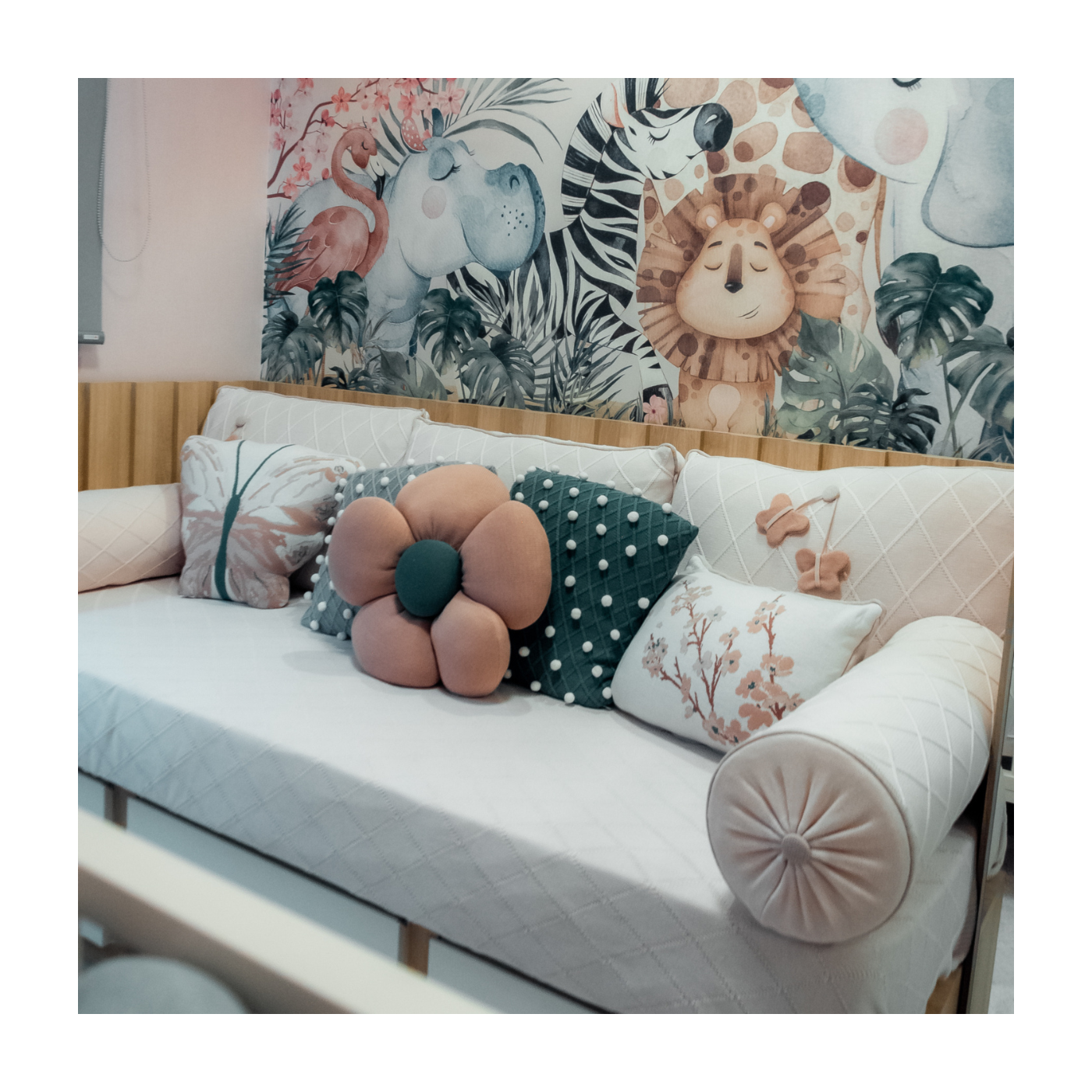 Deixe o quarto infantil ainda mais aconchegante e encantador com o nosso exclusivo Kit de Almofadas Jardim Encantado. Composto por 10 peças cuidadosamente confeccionadas e uma colcha em tricô, o kit oferece conforto, beleza e um toque lúdico perfeito para quartos temáticos ou montessorianos.