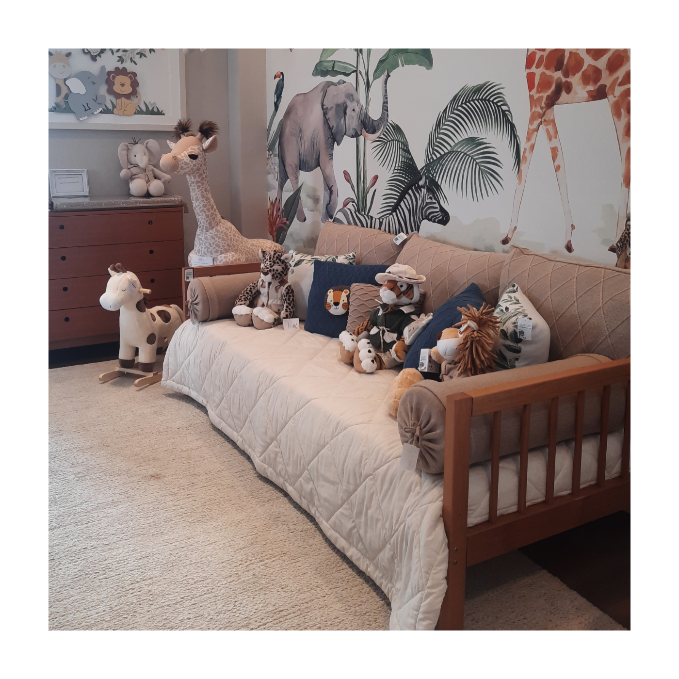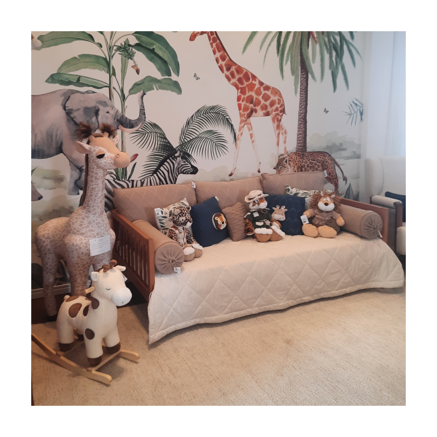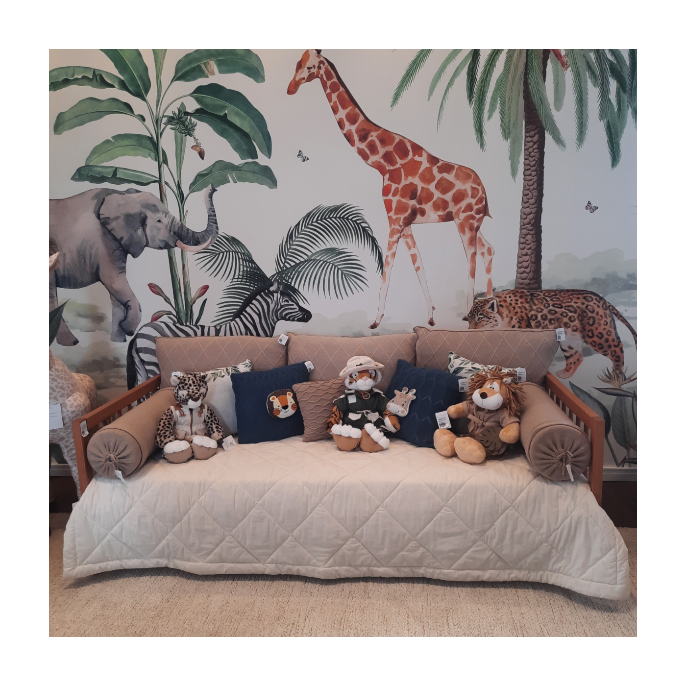 Transforme o quarto dos pequenos em um verdadeiro refúgio de aventuras com o nosso encantador Kit de Almofadas Safari. Composto por 11 peças e uma colcha com acabamento em matelassê, o conjunto une conforto, funcionalidade e um visual lúdico inspirado na natureza e nos animais da savana.