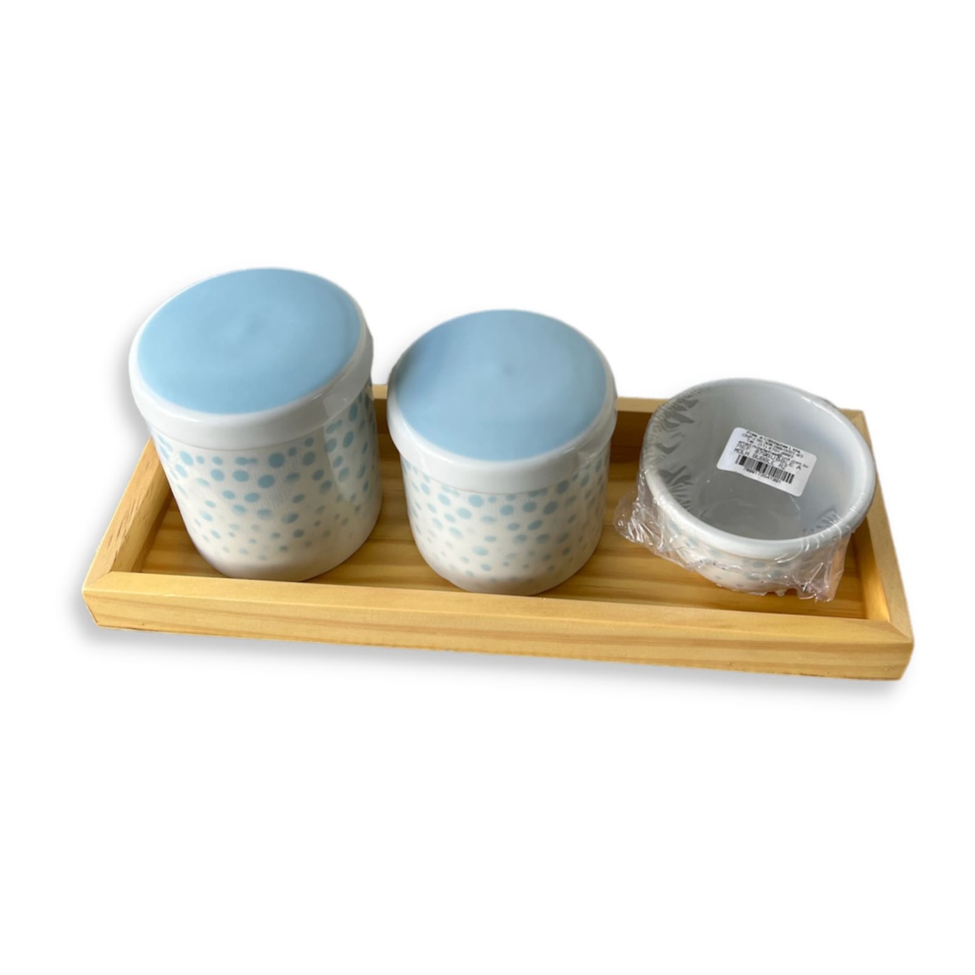 Contéudo: 1 Molhadeira (1060) 2 Potes (1253, 1254) 1 Bandeja de Madeira (1176)