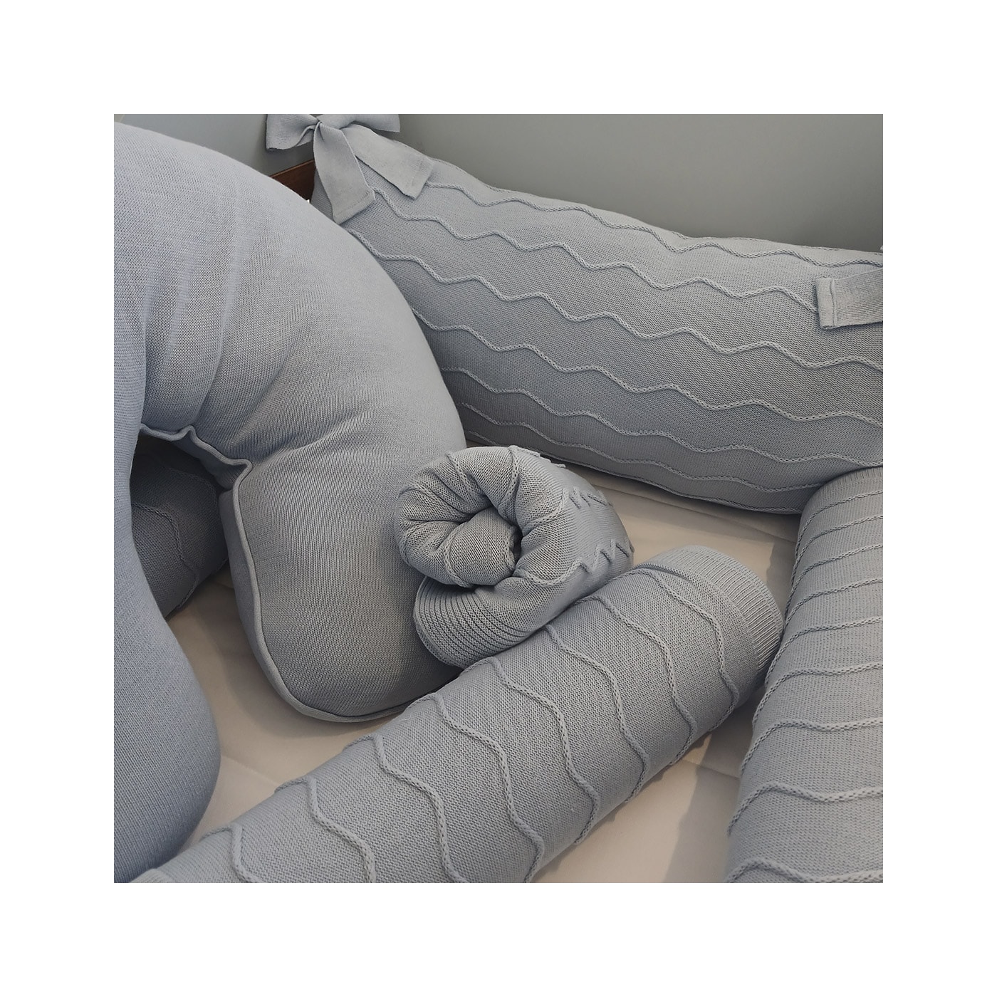 Este Kit de Berço em Trama Ondas Baby Soft é a combinação perfeita de delicadeza e conforto para o quarto do seu bebê. Com um design elegante e detalhado, ele é composto por: