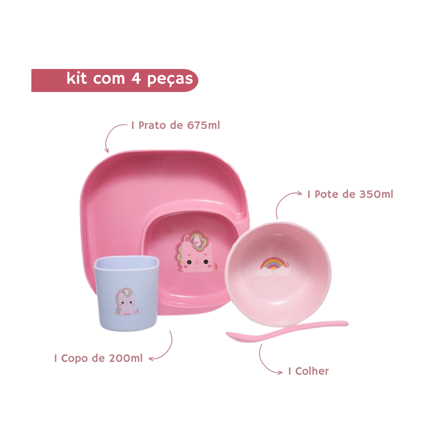 Kit Refeição 4 Peças Unicónio Rosa - Kouii