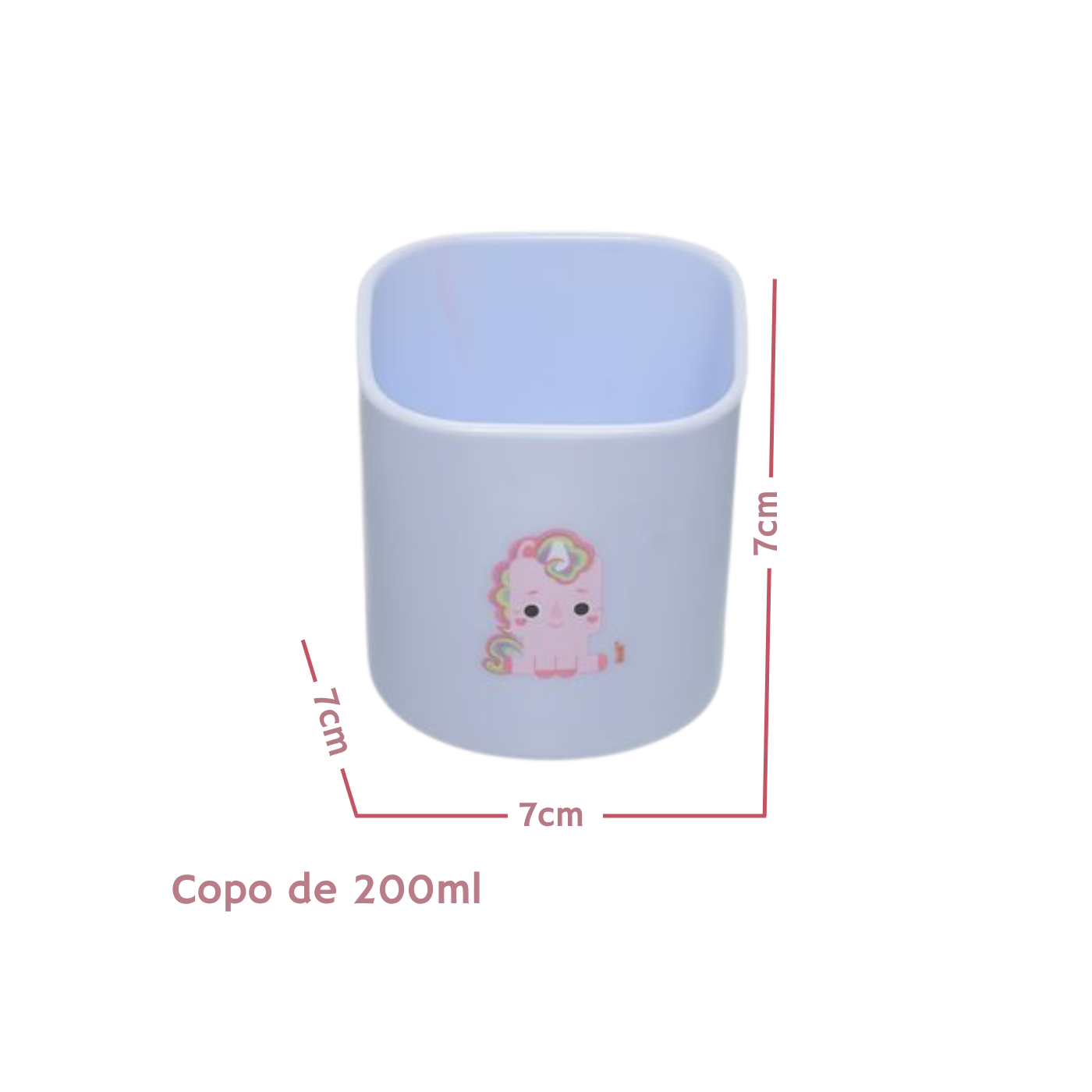 Copo: Tamanho adequado para a transição da mamadeira para o copo.
