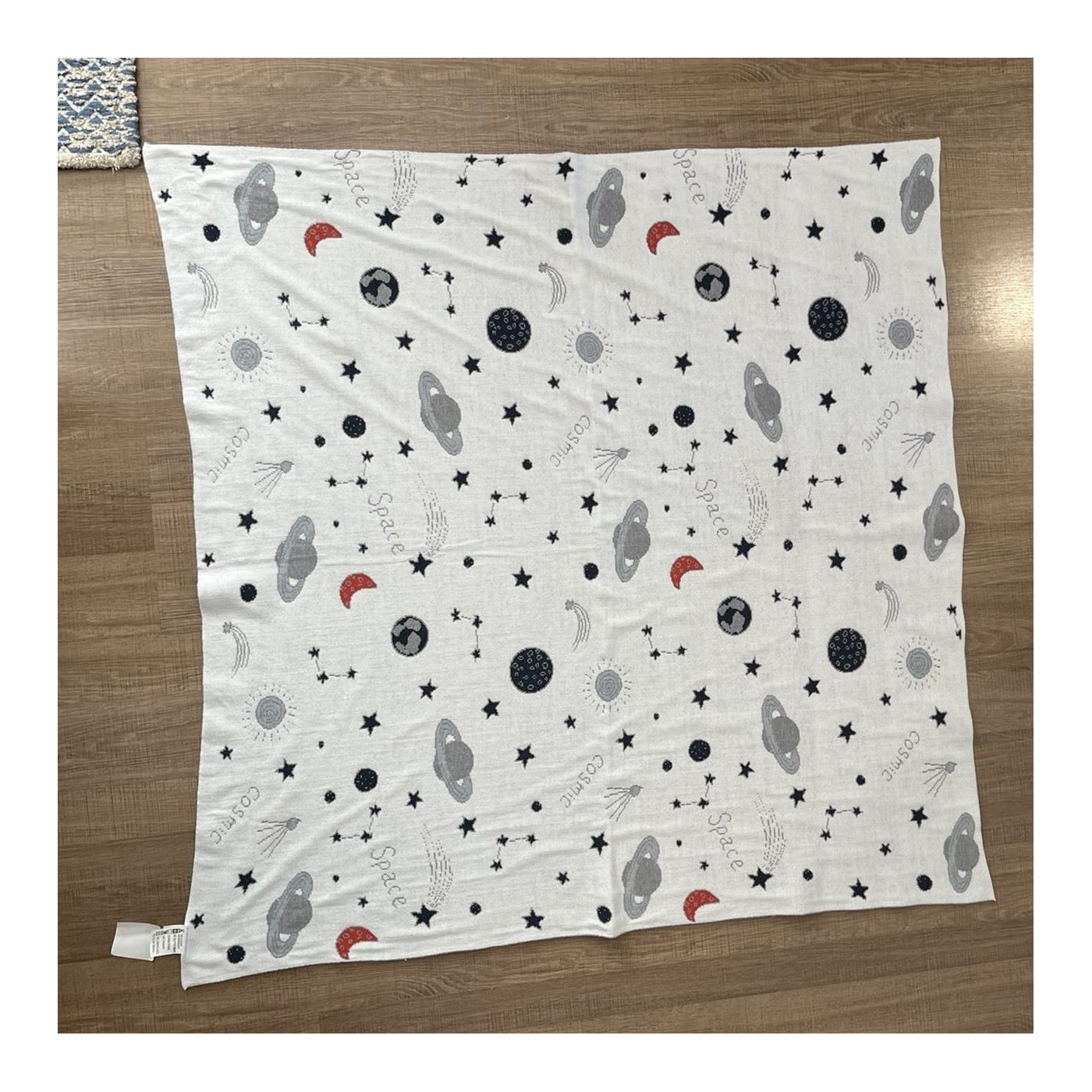 Manta de Colo em Tricot com Estampa de Planetas – Off White e Marinho (90x90 cm)