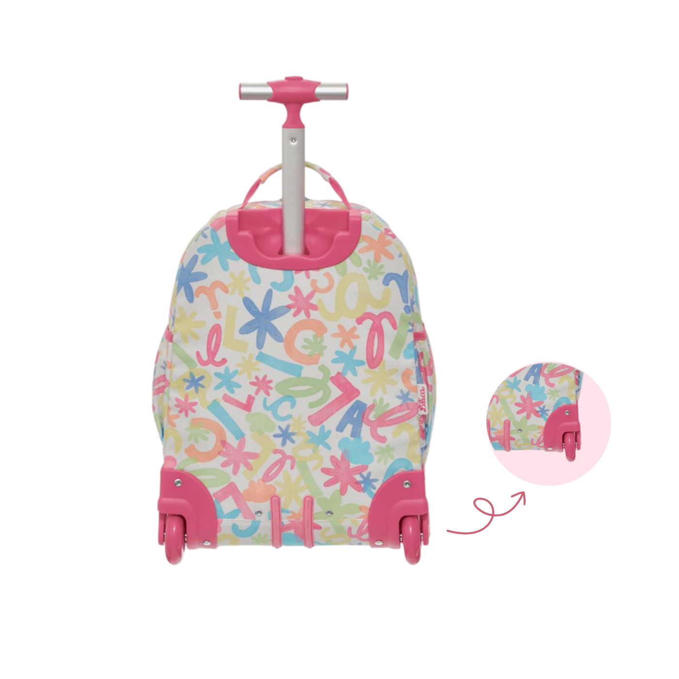 Pensada para oferecer máximo conforto, a mochila conta com sistema de carrinho com rodinhas resistentes e puxador retrátil, evitando o peso excessivo nas costas da criança. Para maior versatilidade, possui também alça de mão, ideal para terrenos irregulares, escadas ou momentos em que o uso do carrinho não é possível.