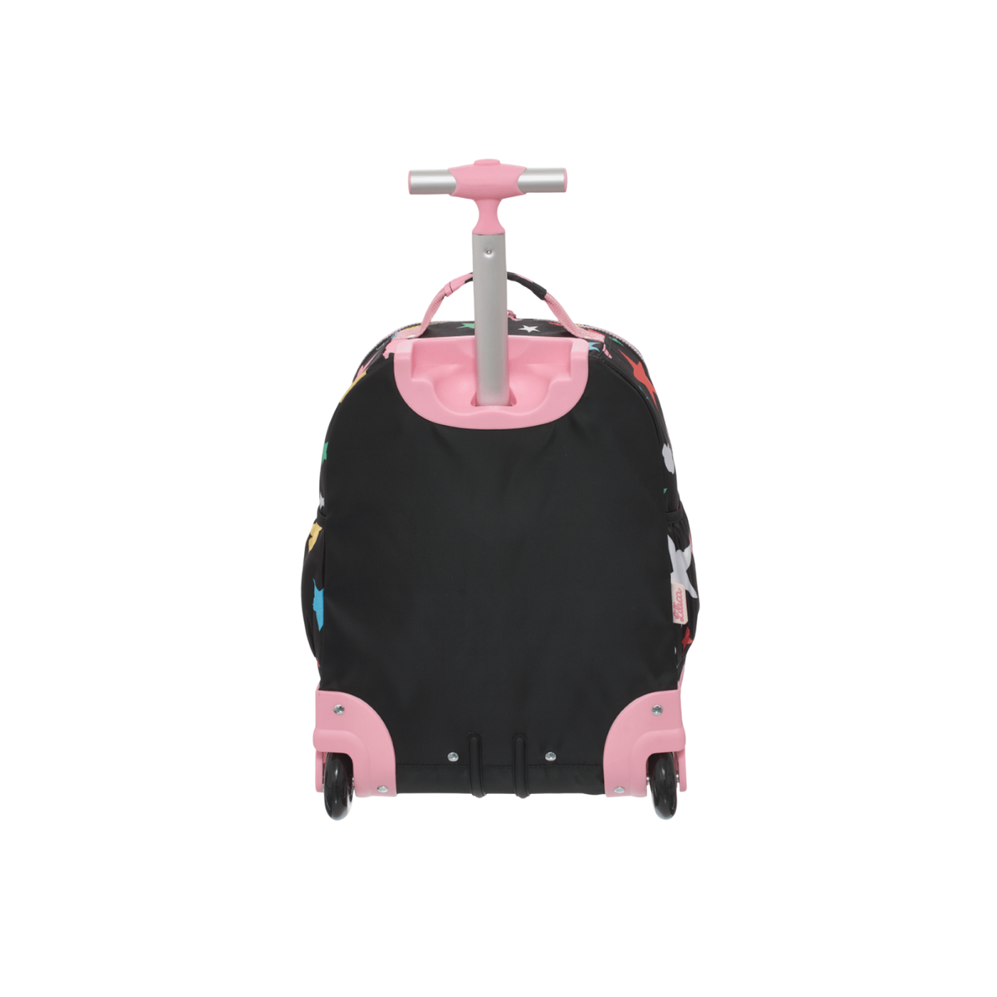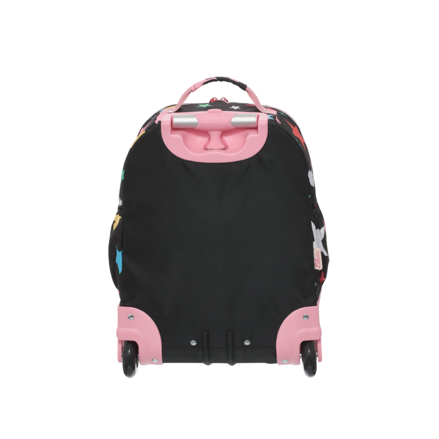 Pensada para oferecer máximo conforto, a mochila conta com sistema de carrinho com rodinhas resistentes e puxador retrátil, evitando o peso excessivo nas costas da criança. Para maior versatilidade, possui também alça de mão, ideal para terrenos irregulares, escadas ou momentos em que o uso do carrinho não é possível.