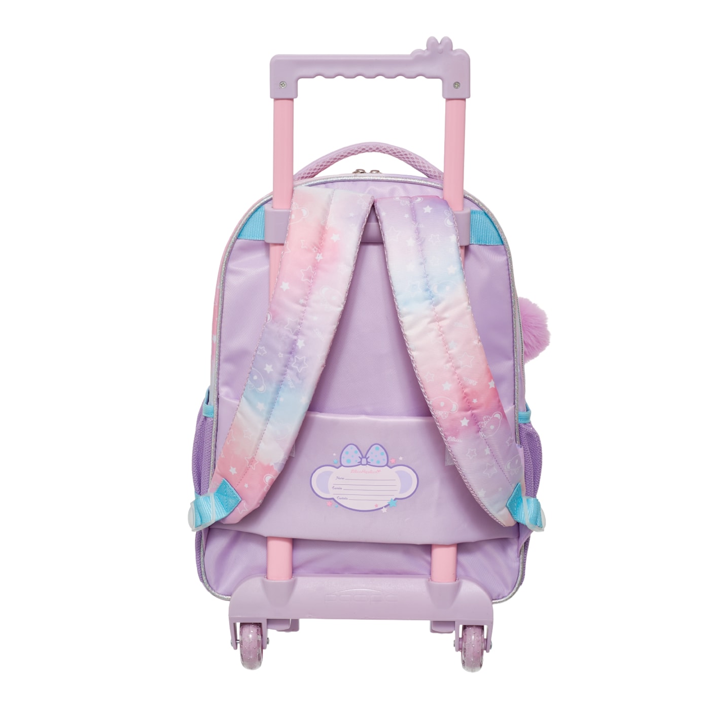 Com rodinhas resistentes e alça retrátil, a Mochila Lumina oferece conforto no transporte e praticidade para a rotina escolar.