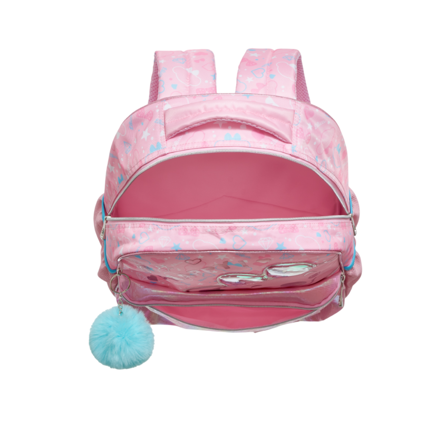 Pensada para a rotina escolar, a Mochila Lilica Ripilica Charming une beleza e funcionalidade. Possui alças acolchoadas e ajustáveis, costas reforçadas e amplo espaço interno, ideal para acomodar cadernos, livros, estojo e lancheira com organização e conforto. O bolso frontal com zíper facilita o acesso aos itens menores, enquanto os bolsos laterais em redinha são perfeitos para garrafinhas ou objetos de uso diário.
