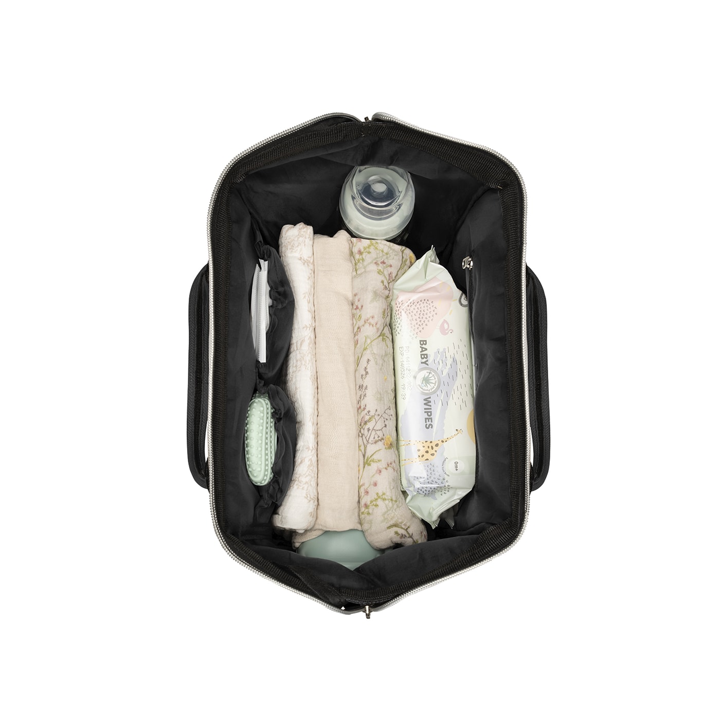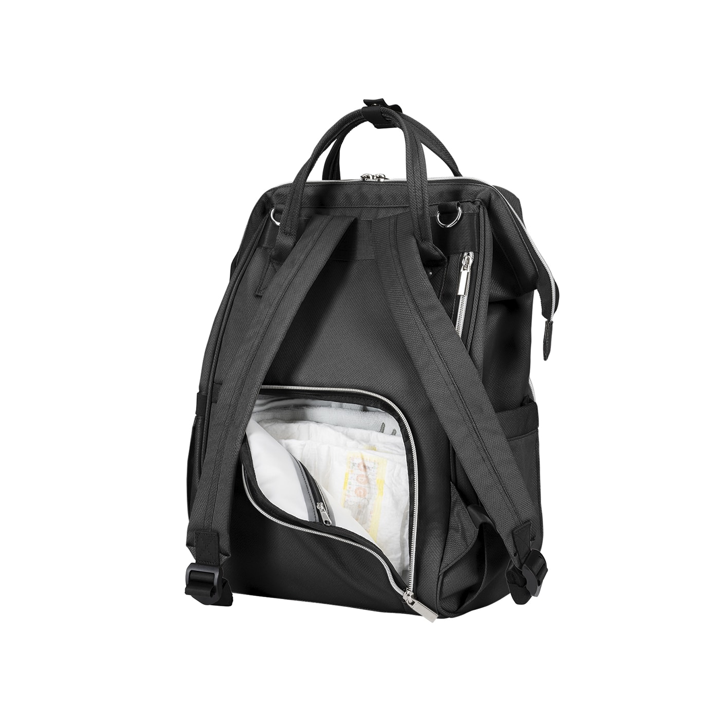 • Organização eficiente - Inclui um bolso principal com uma abertura ampla para fácil acesso, bolsos organizadores para fraldas e roupas e um bolso resistente à água para itens molhados.