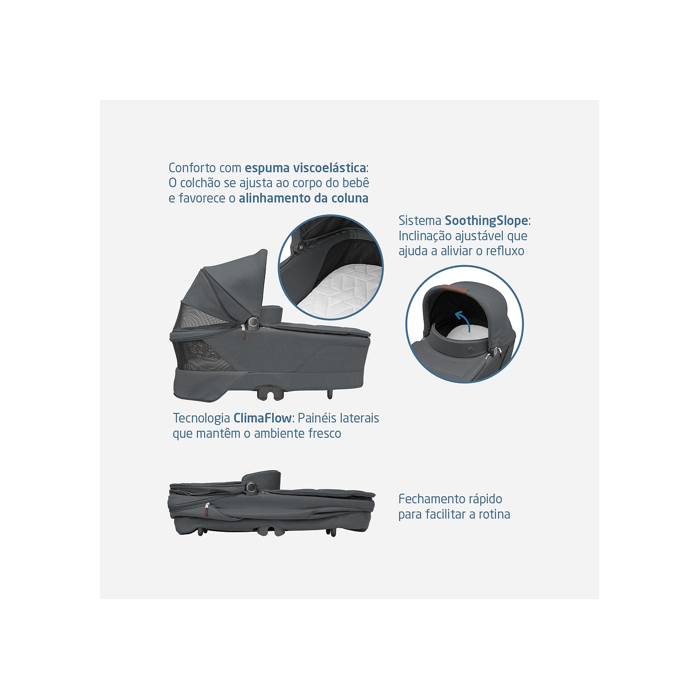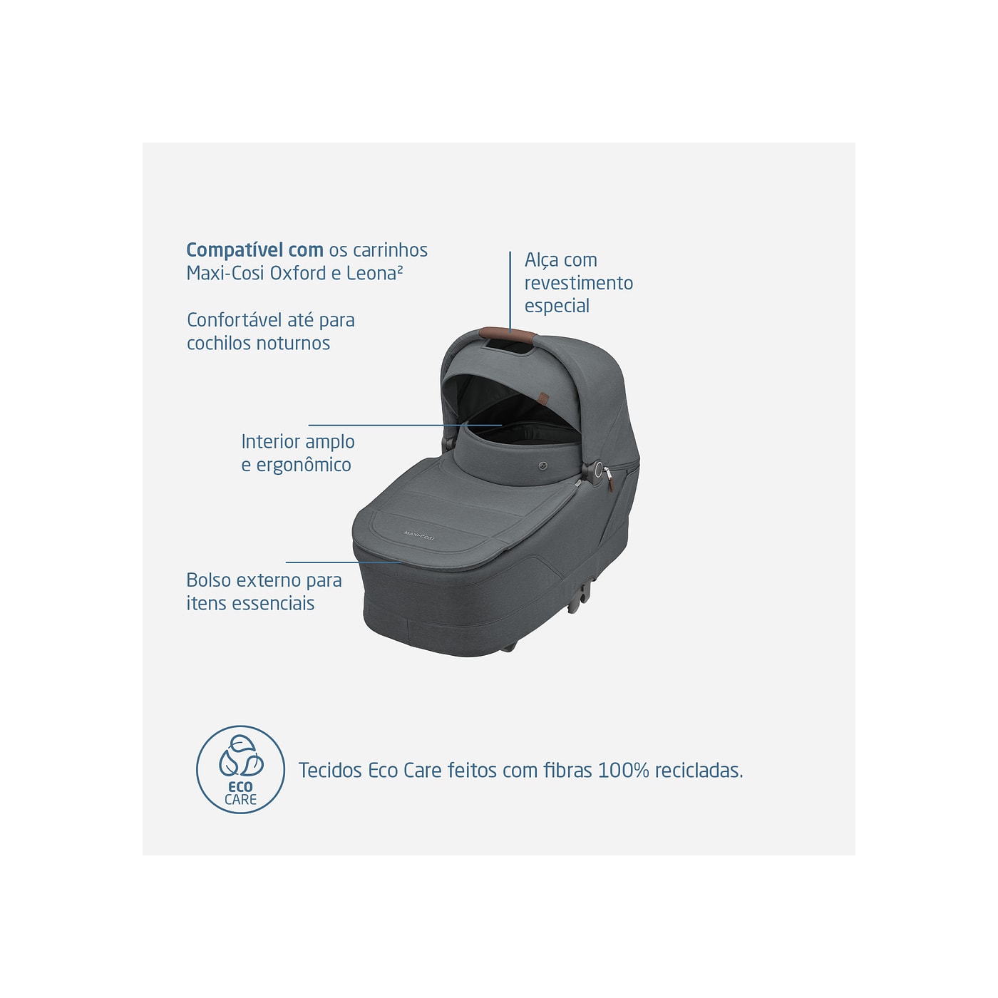 Compatível com carrinhos Maxi-Cosi Oxford e Leona², permitindo transformar em um sistema completo para passeios com conforto e segurança.