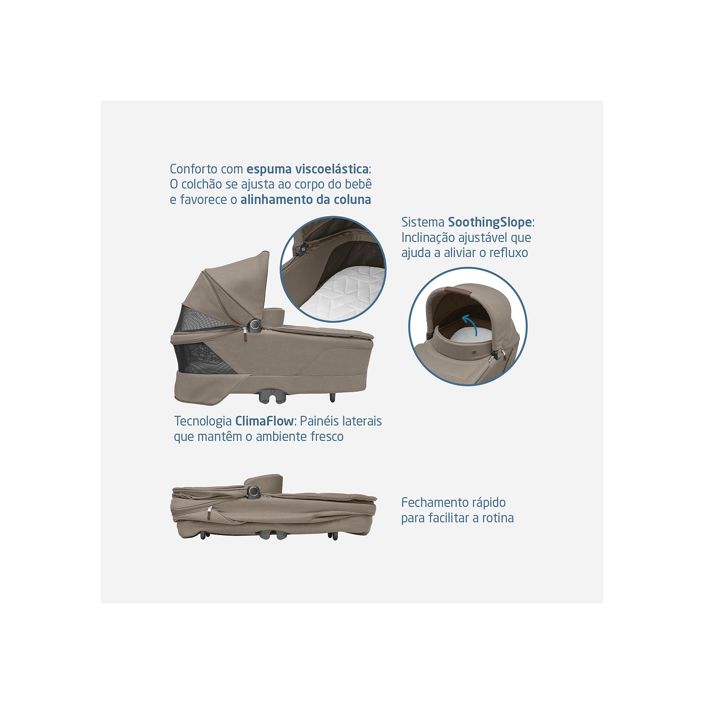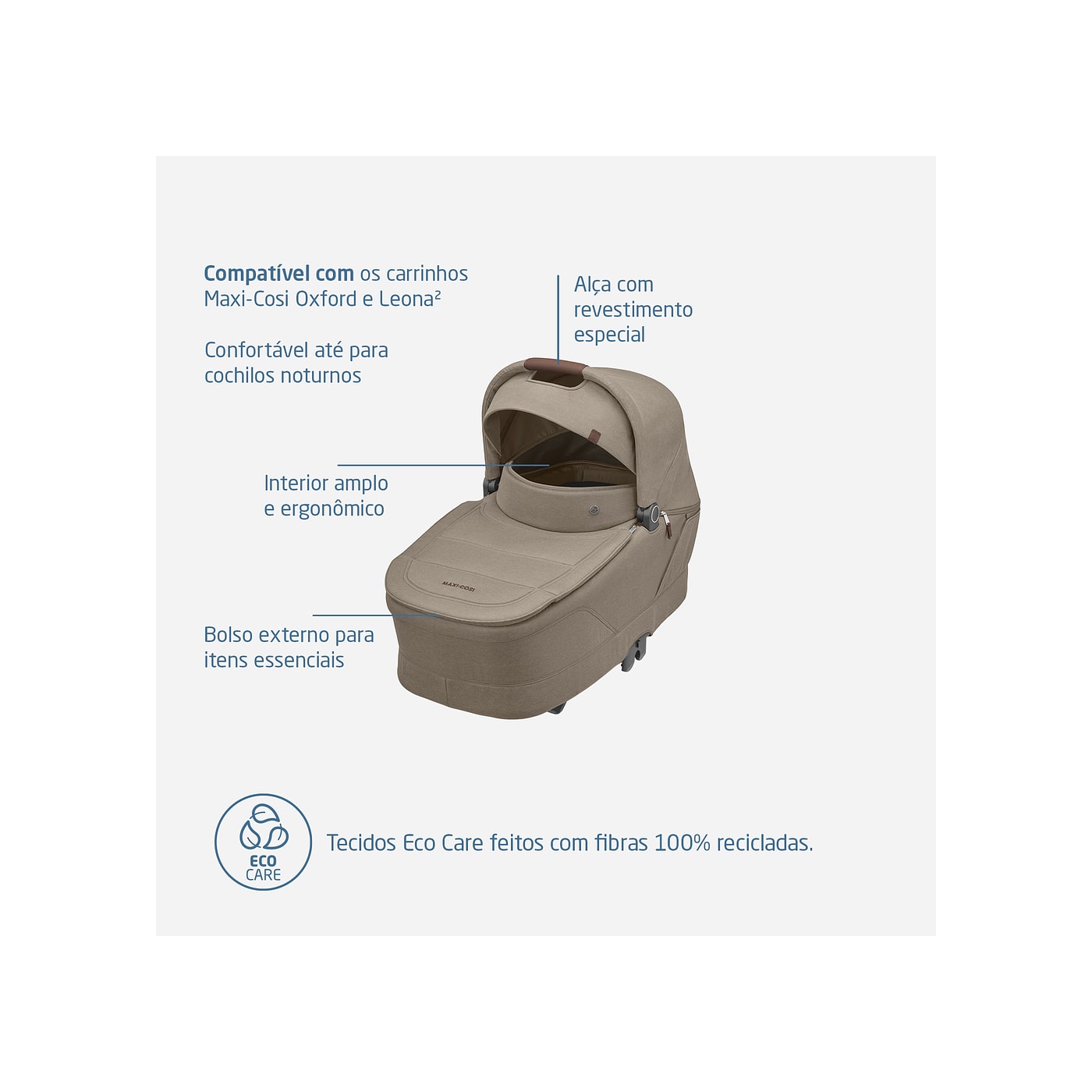 Compatível com carrinhos Maxi-Cosi Oxford e Leona², permitindo transformar em um sistema completo para passeios com conforto e segurança.