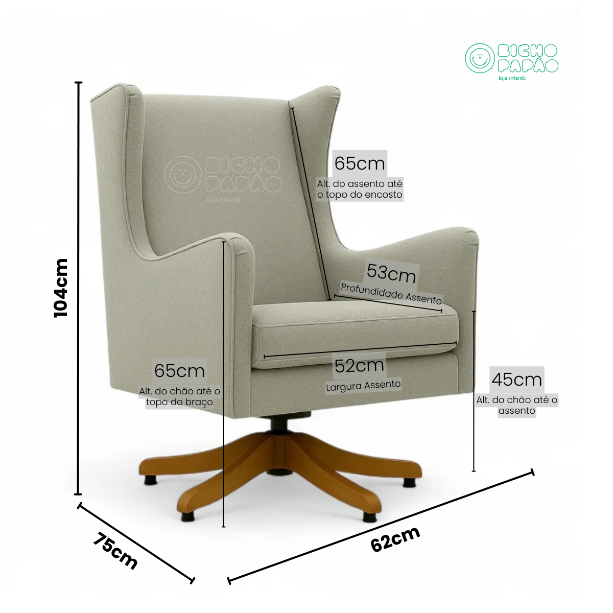 Poltrona de Amamentação Fox Giro + Balanço em Madeira - Tecido 205B