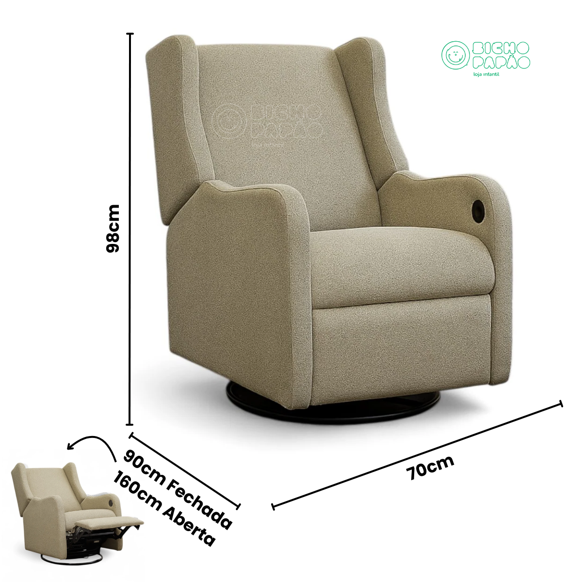 Poltrona de Amamentação Jazz Reclinável Elétrica com Pés Giro + Balanço Soft Bouclê Bege