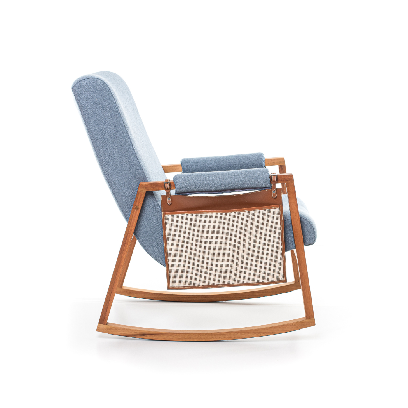 - Base de balanço em madeira na cor mel: proporciona movimentos suaves e relaxantes.