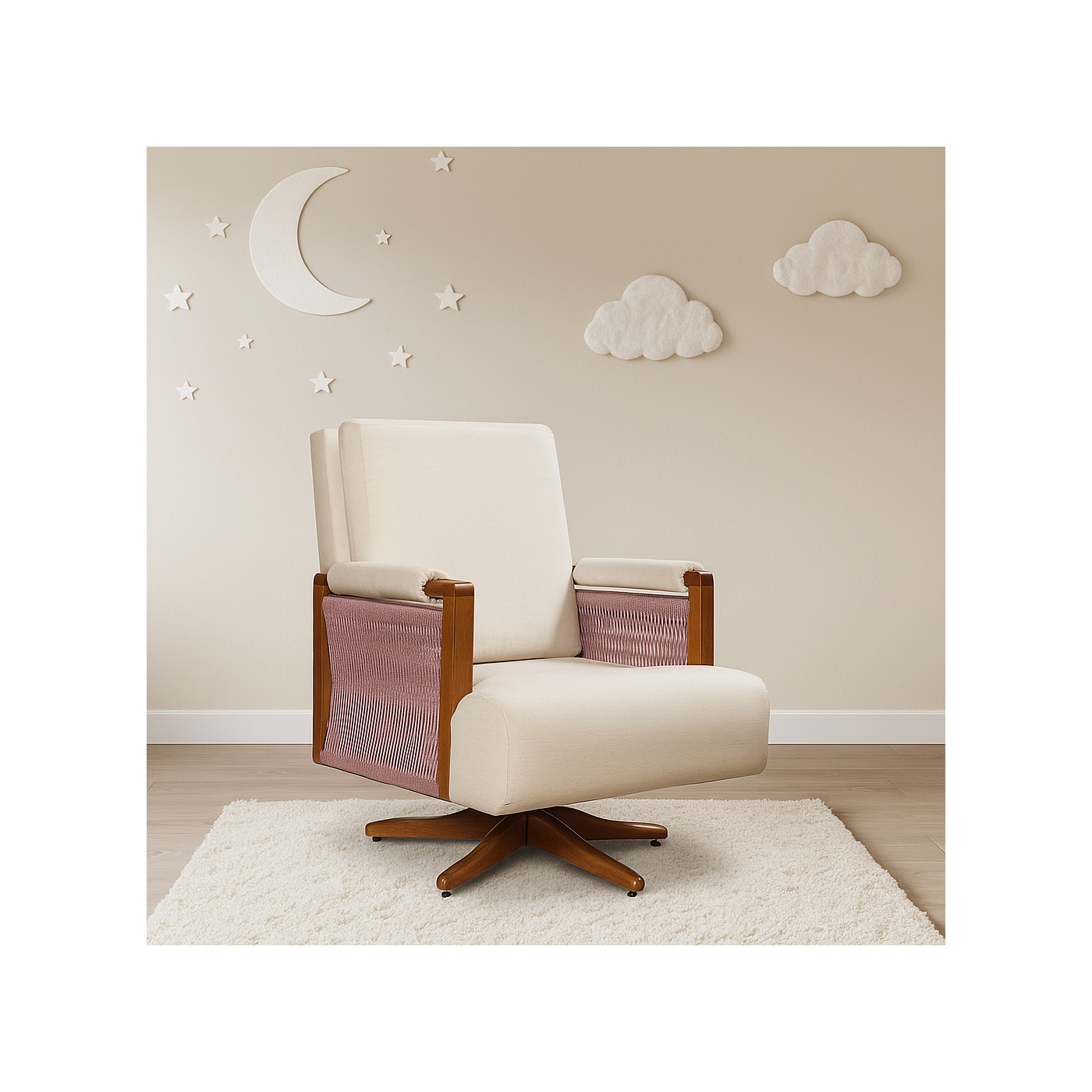 A Poltrona Vivre combina conforto e modernidade em um design inovador, perfeito para transformar o momento da amamentação em uma experiência especial. Seu estilo contemporâneo se destaca pelas laterais em corda náutica, que trazem charme e leveza ao móvel, além de um toque artesanal único.