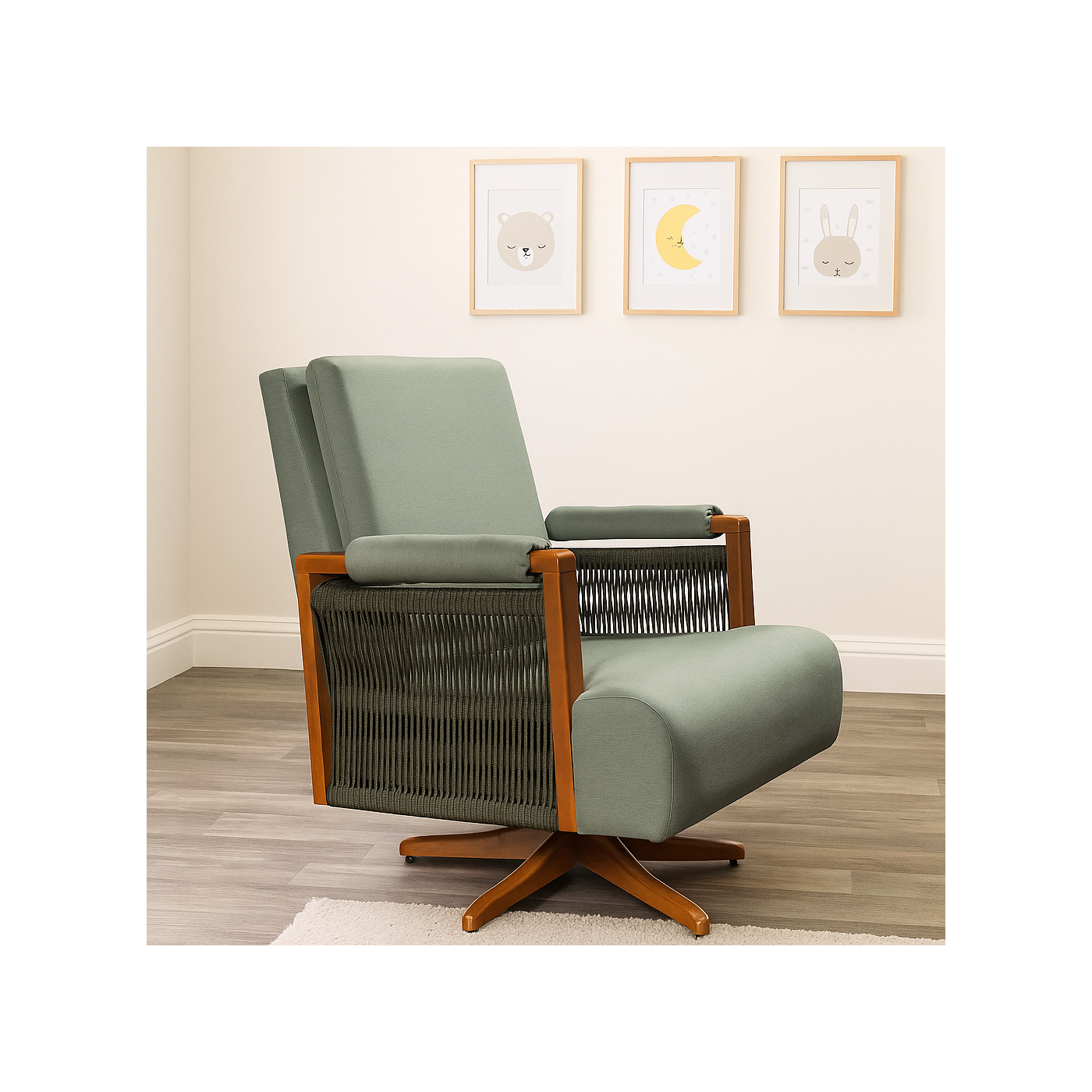 Poltrona de Amamentação Vivre Balanço e Giro Tecido 102A com Corda Verde