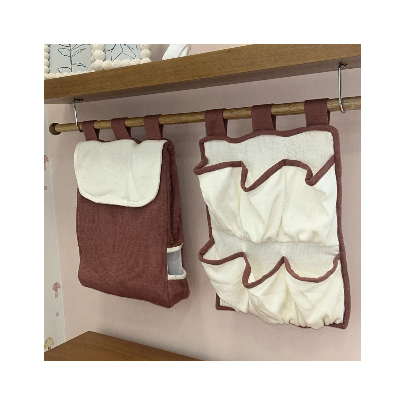 Porta Fralda e Trocador Kit Cogumelo - Off White e Vinho