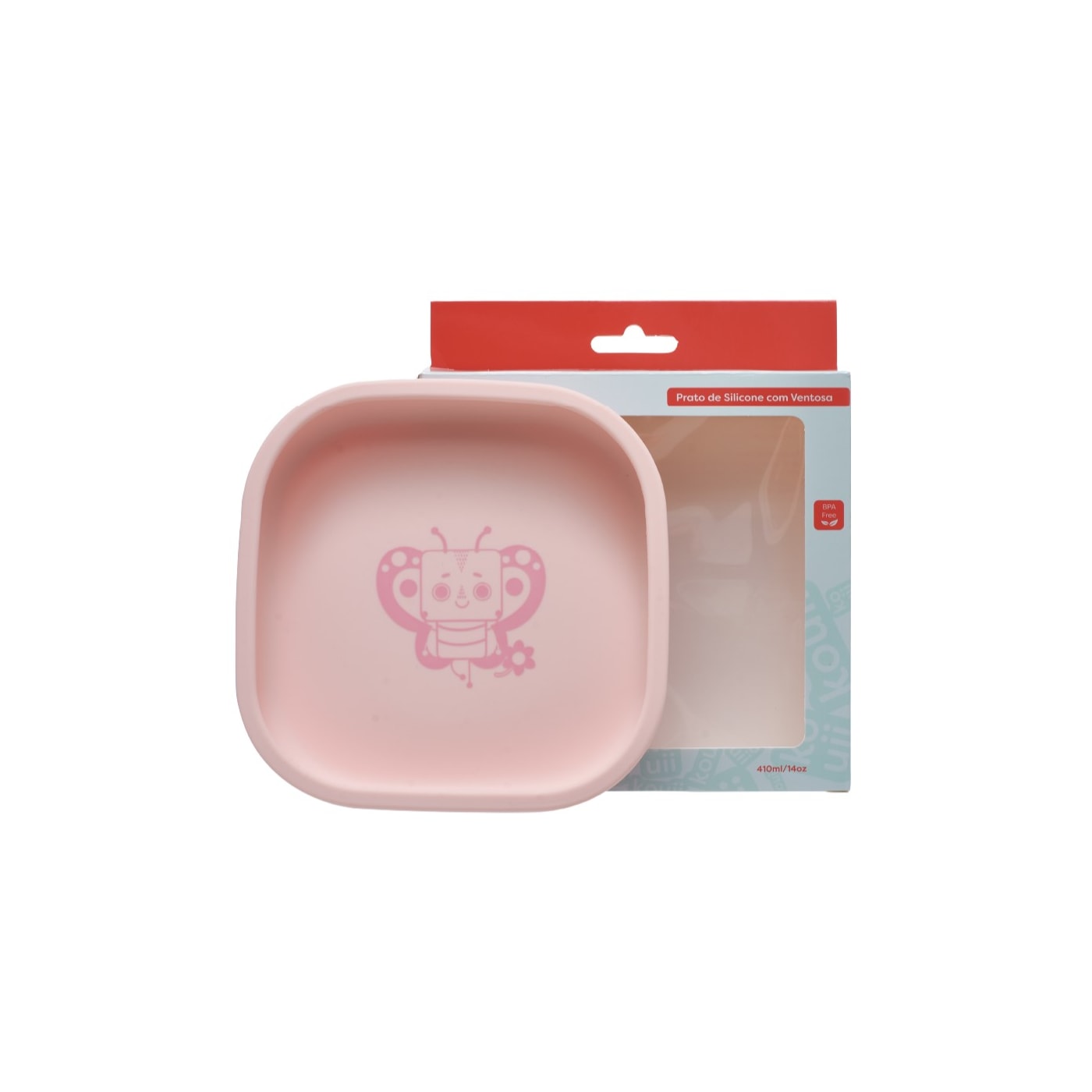 Prato de Silicone com Ventosa Borboleta Pipa 410ml Rosa