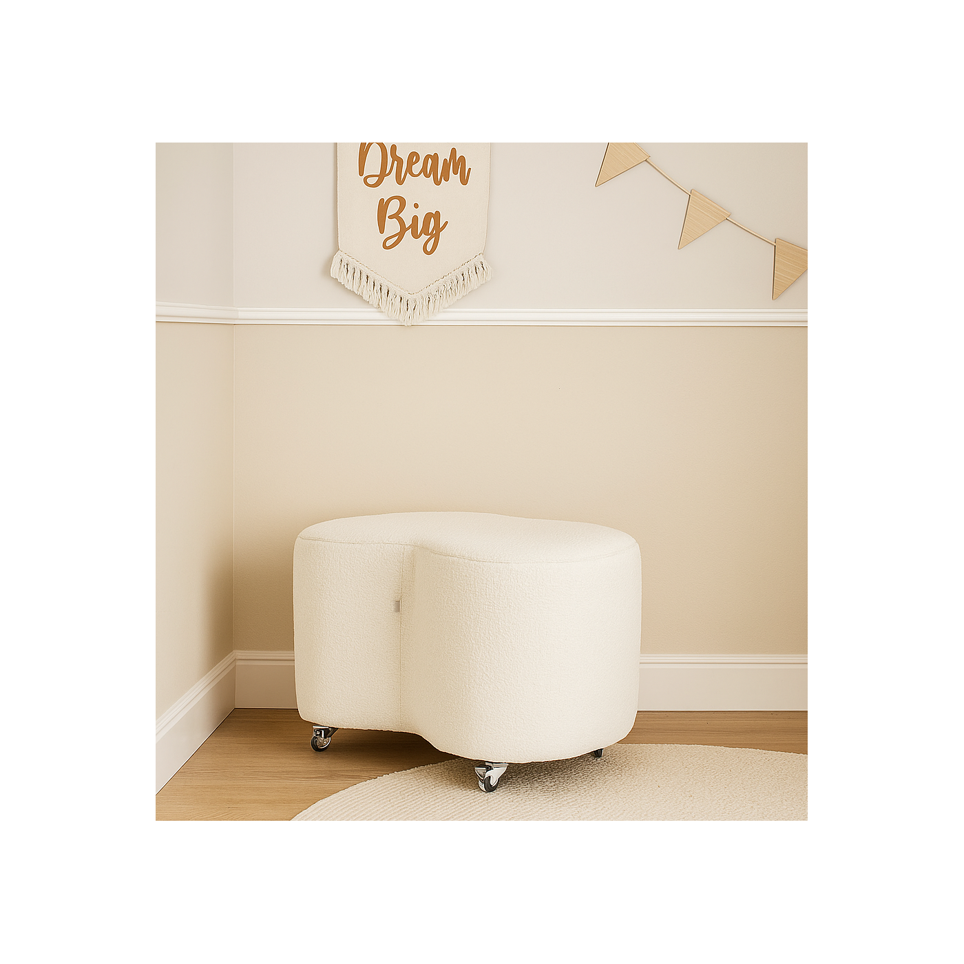 Pufe Para Descanso de Pés Bean Tecido Bouclê com Rodízios em Gel