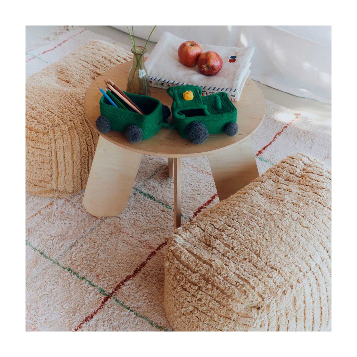 Esta é uma peça artesanal única, cuidadosamente desenhada por Lorena Canals e feita à mão de forma sustentável em fábrica própria, utilizando fibras naturais e materiais reciclados, corantes atóxicos e um compromisso com o planeta e as pessoas. Desde o processo de design até à obtenção de materiais e produção, escolhemos sempre opções que minimizem o desperdício e garantam designs duradouros.