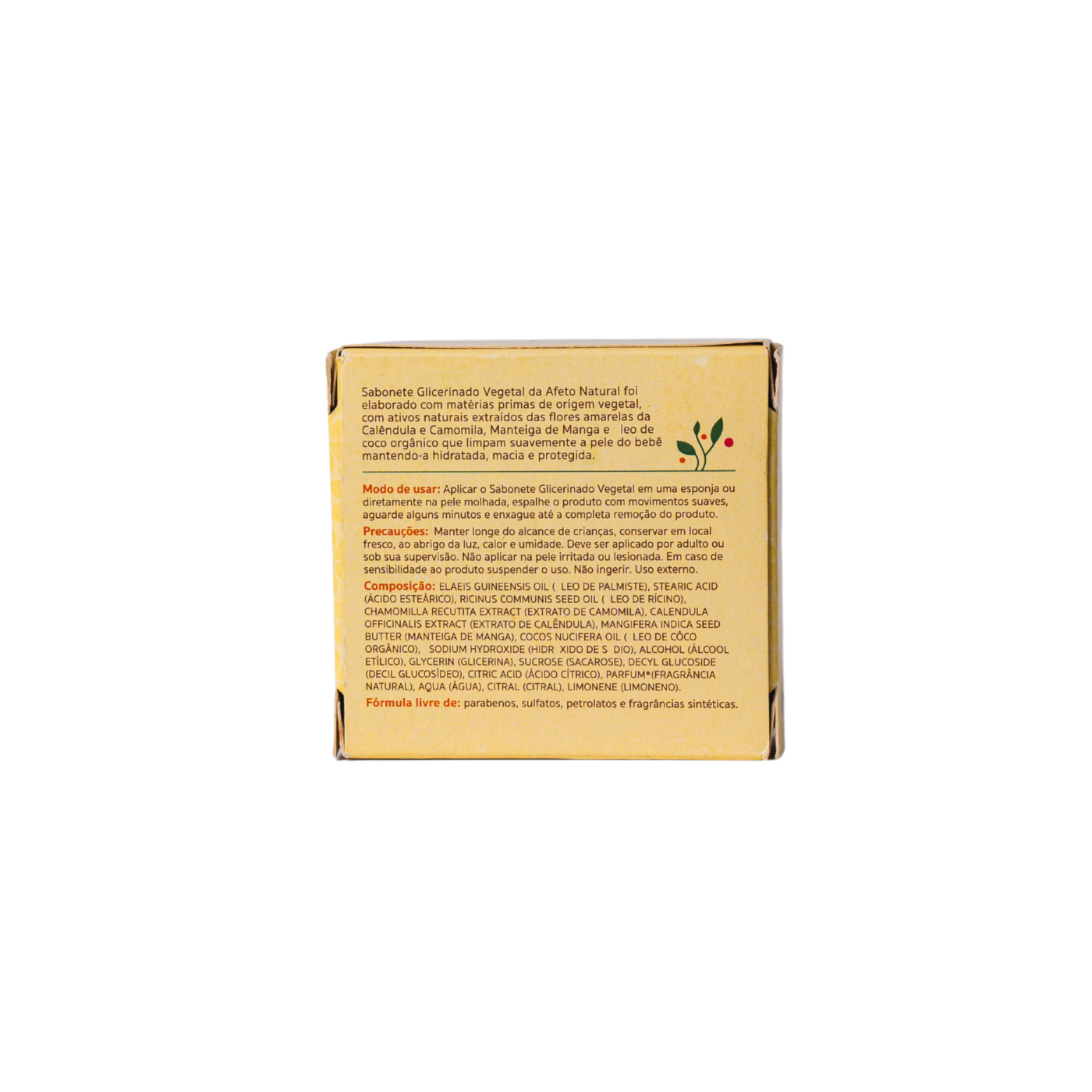 O Sabonete Infantil Flores Amarelas da Afeto Natural eleva o cuidado diário com um toque de sofisticação, proporcionando limpeza suave e nutrição profunda para peles sensíveis e delicadas. Com ingredientes 100% de origem vegetal, sua fórmula é enriquecida com extrato de Calêndula e Camomila, Manteiga de Manga e Óleo de Coco Orgânico, garantindo propriedades emolientes, hidratantes, calmantes e regenerativas.