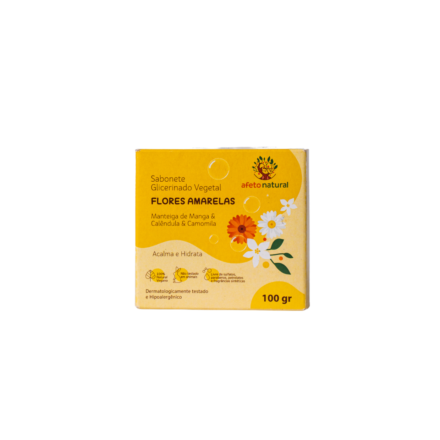 Livre de parabenos, sulfatos, petrolatos e fragrâncias sintéticas, o Sabonete Flores Amarelas reflete o compromisso da Afeto Natural com o meio ambiente, o bem-estar e a sofisticação.