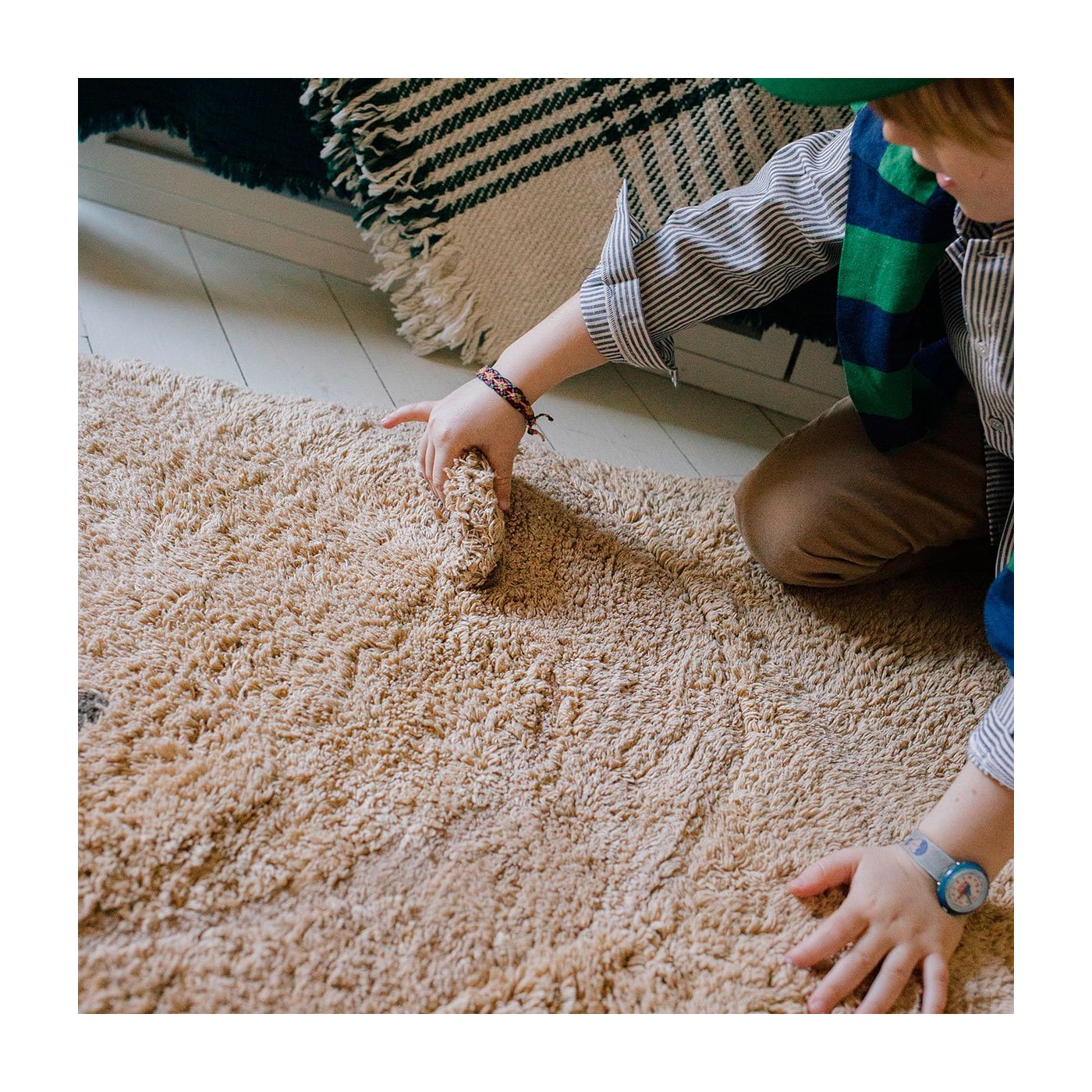 Nos primeiros dias, é aconselhável varrer o tapete com uma escova macia no sentido do felpudo e, a seguir, é recomendável usar o aspirador de pó. Não utilize robôs aspiradores, nem aspiradores com batedores.