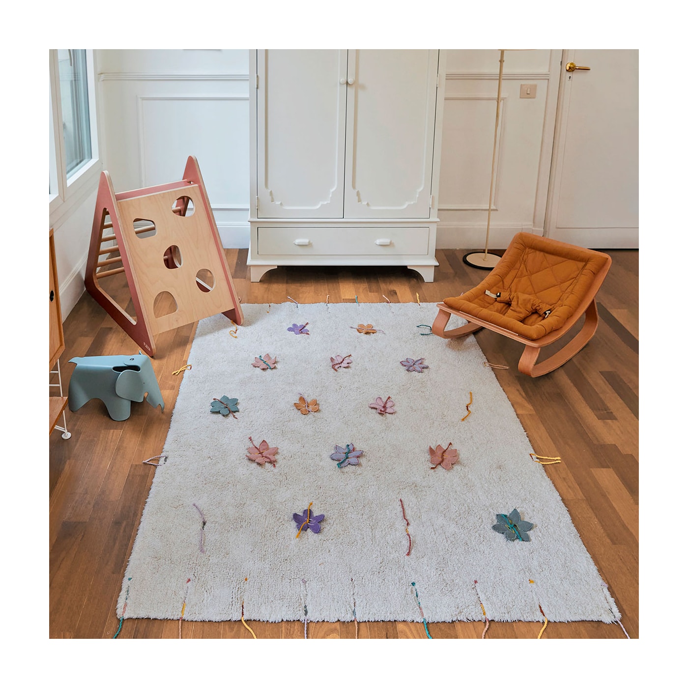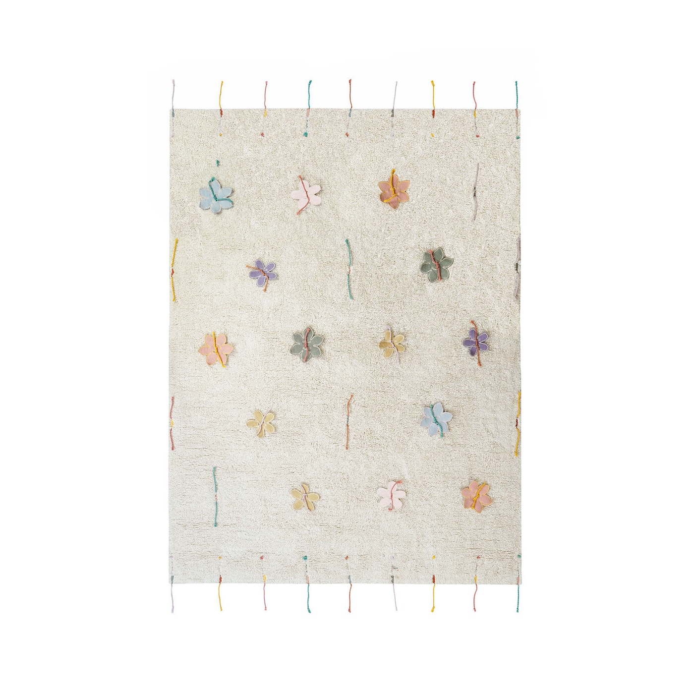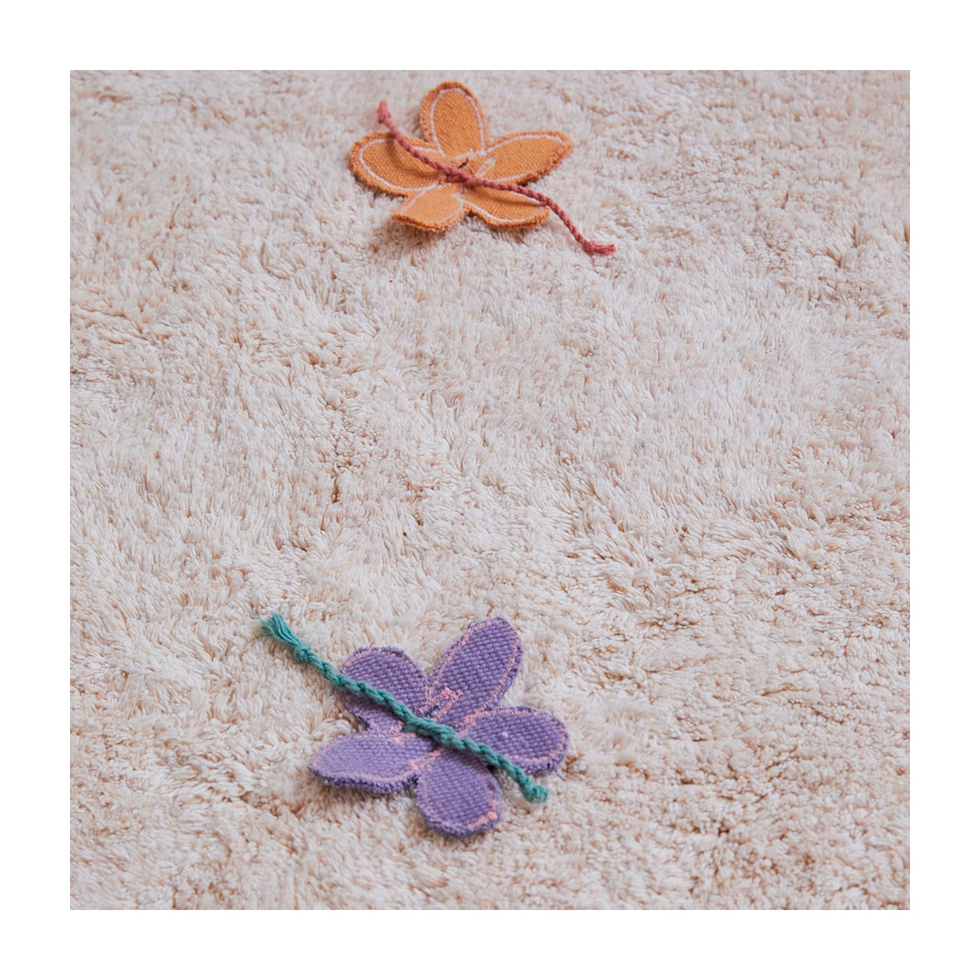 O tapete lavável Wildflowers é interativo onde as flores podem ser facilmente removidas ou amarradas à base, podendo criar diferentes versões de padronagens. O tapete é tufado com algodão natural e com nuances de cor marfim. Por toda a peça e borda do tapete, delicadas tranças de fios coloridos de algodão. O tapete vem com 14 flores feitas à mão com a base canvas colorida dos retalhos de produção da fabrica e podem ser facilmente amarrados às cordinhas de algodão colorido. Faça sua própria estampa e crie uma combinação única!