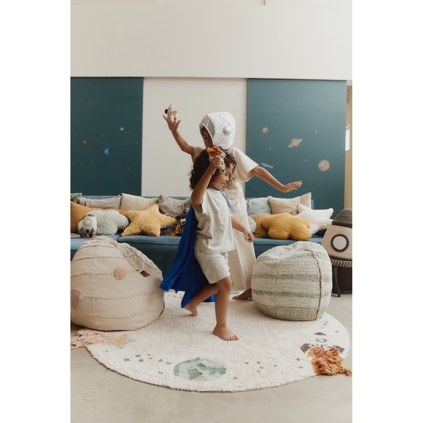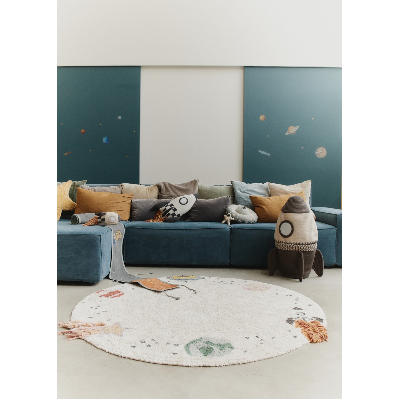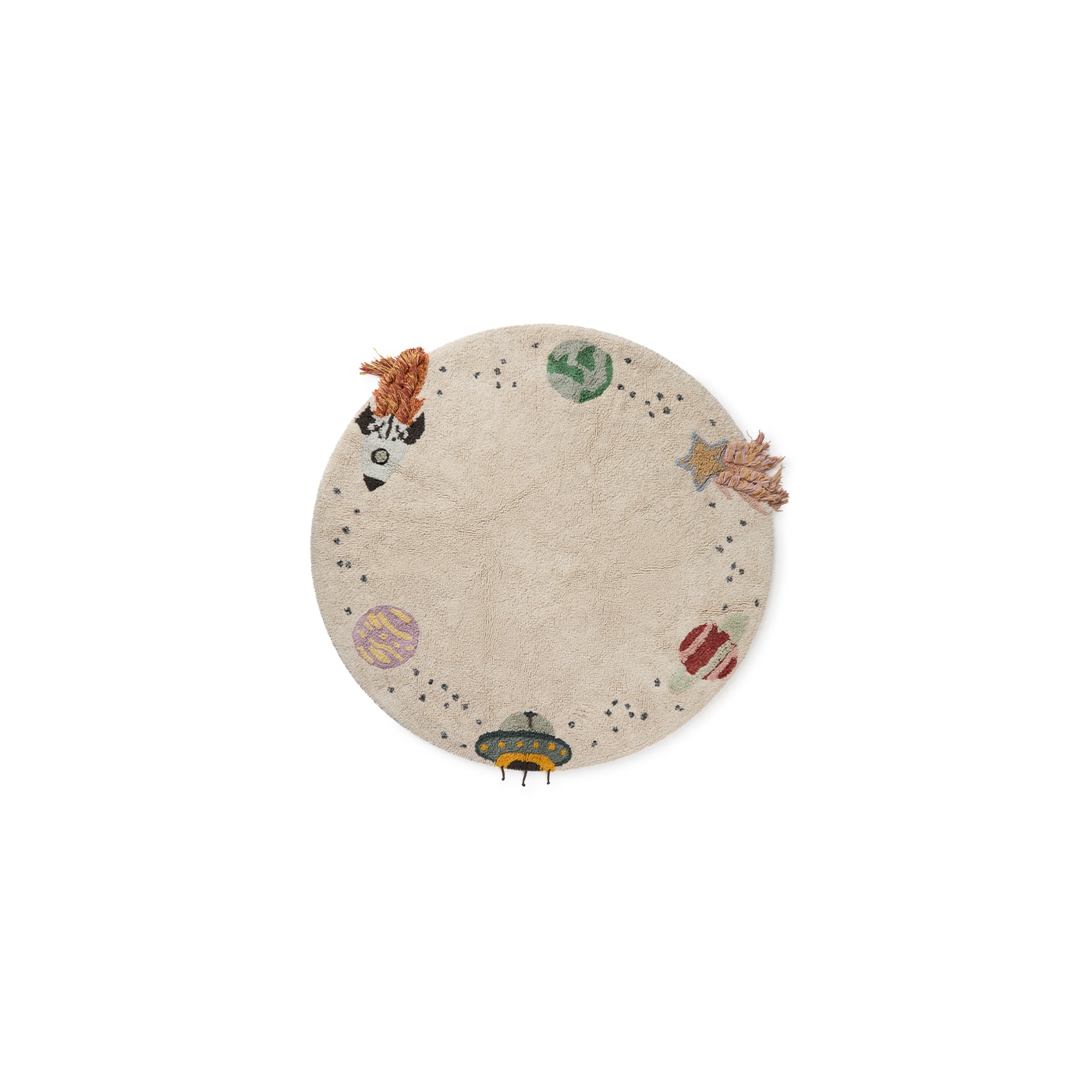 Transforme o quarto do seu filho em uma aventura espacial com o tapete Interestelar. Com um design encantador, a peça recebe desenhos de planetas, foguete, estrela cadente e OVNI em sua borda. É perfeito para jovens exploradores e aspirantes a astronautas.