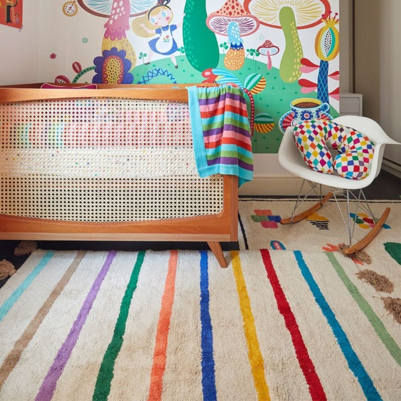 Nos juntamos à marca espanhola de tapete de algodão Lorena Canals para fazer uma coleção exclusiva com desenhos MOOUI! O principal diferencial do Tapete Listrado 1,20 x 1,60 M é o design único e moderno MOOUI aliado à praticidade e qualidade dos tapetes Lorena Canals. Com o seu formato retangular, o tapete Listrado é fácil de combinar e acomodar em qualquer tamanho de quarto. As listras coloridas MOOUI num fundo cru é uma ótima opção de tapete para quarto de bebê, quarto infantil, brinquedotecas ou até em outros cômodos da sua casa. O tapete de algodão transforma qualquer ambiente trazendo alegria e aconchego e é a combinação perfeita para os papéis de parede e roupas de cama da MOOUI. O tapete Listrado é feito em 100% algodão, com tintas atóxicas, é leve devido à sua composição e trama flexíveis o que permite que seja lavado no conforto de sua casa, em máquinas de lavar roupas convencionais. O tapete de algodão Lorena é feito à mão, um a um, por técnicas de tear tradicionais indianas. Cada peça é única e artesanal, logo poderá haver pequenas irregularidades e variações.