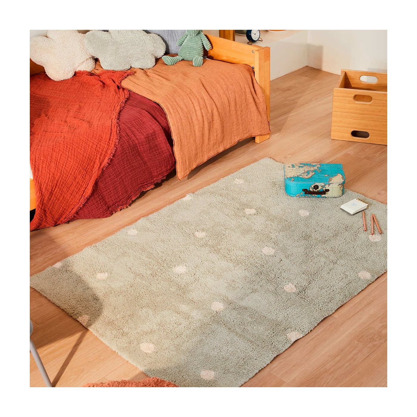Um tapete de algodão macio e com pontos – design que nunca sai de moda.