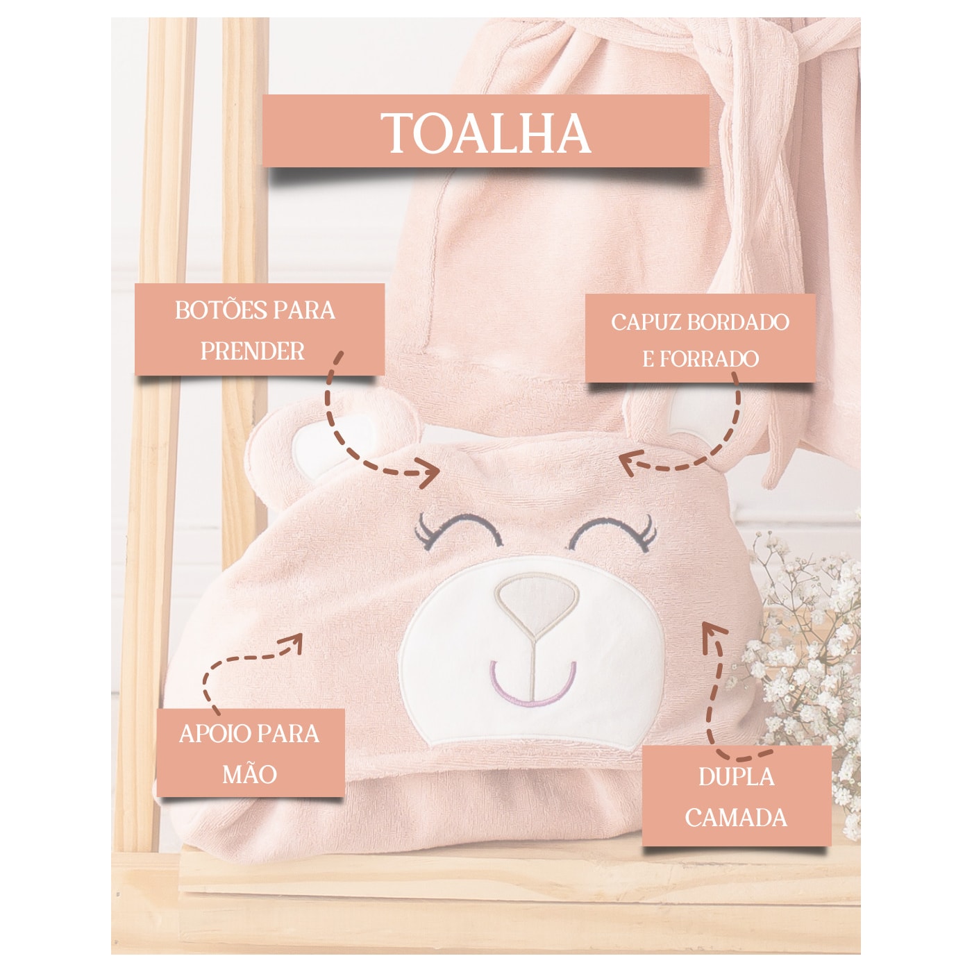 Uma toalha que além de divertida é deliciosa para secar, sua cor super resistente e com toque macio. Vem com botões para virar uma capa ou para colocar uma toalha fralda refil. Com suporte para as mãos das crianças para elas se abraçarem.