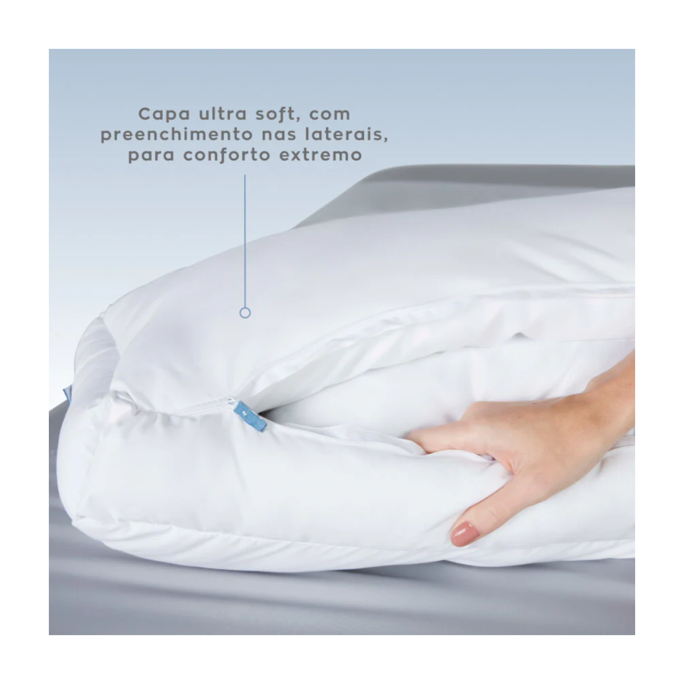 Capa ultra soft, com bordas acolchoadas, proporciona mais suporte para o ombro e conforto extremo.
