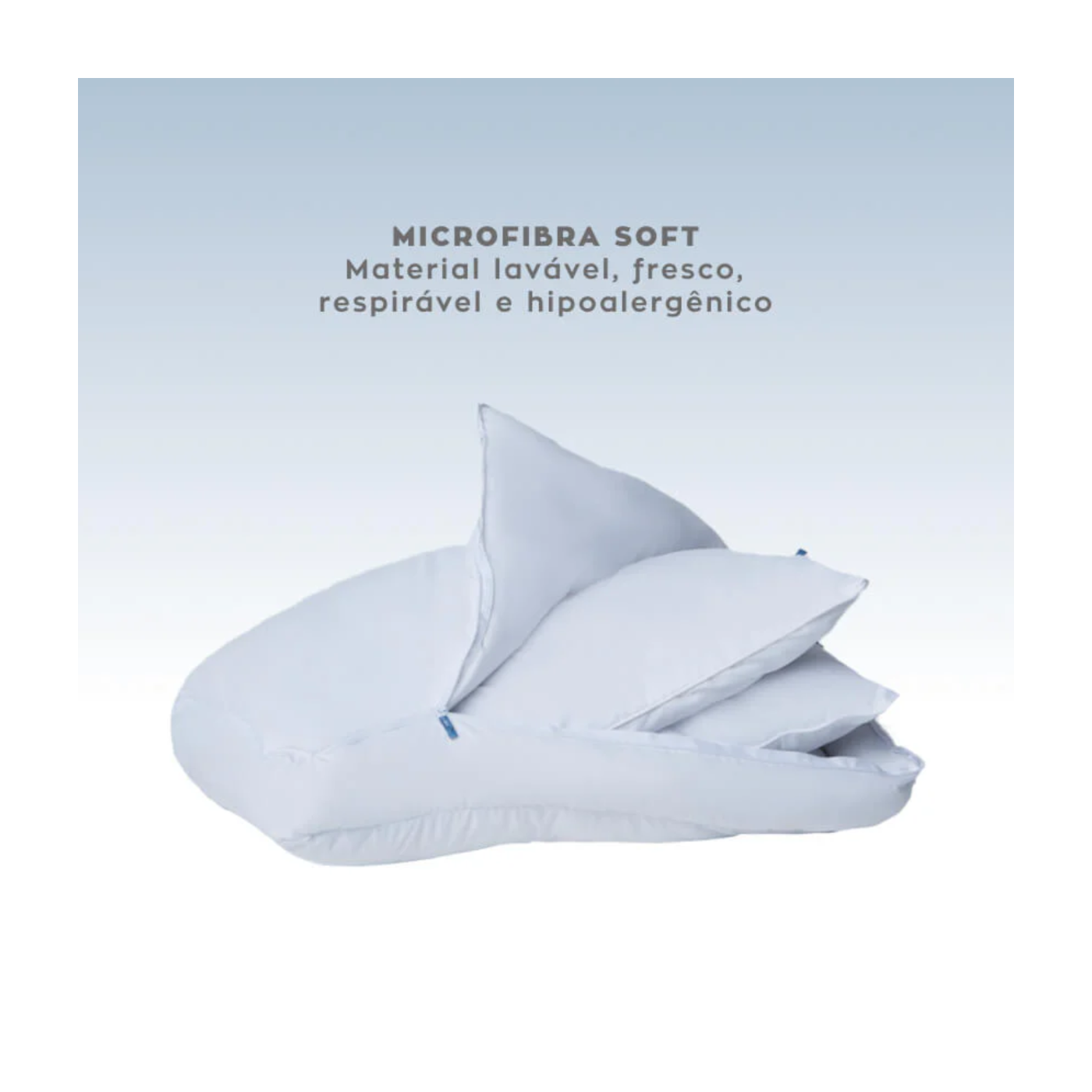 Sensação de dormir nas nuvens, com o travesseiro mais fofo do mundo, proporcionada pela maciez extraordinária da Microfibra Soft.