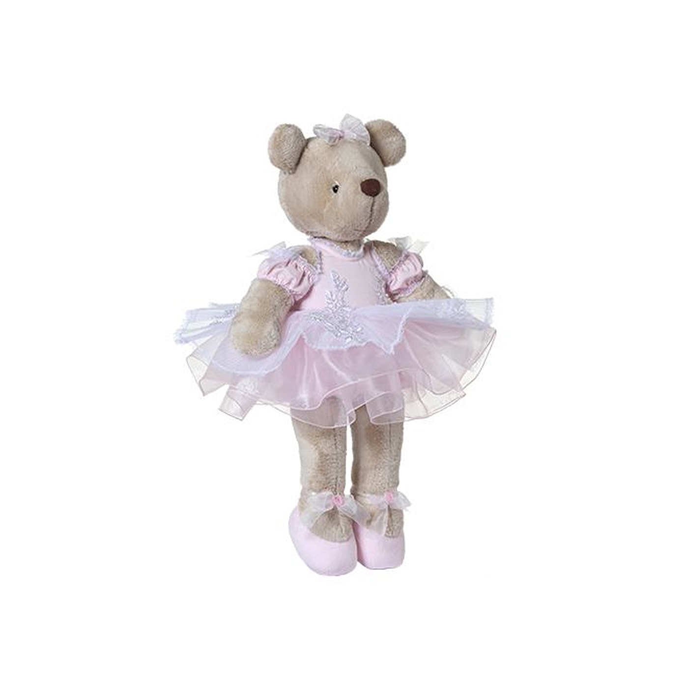 Ursinha de pelúcia bailarina vai divertir e encantar as mais variadas decorações das mais doces meninas. Com roupa de ballet clássico com detalhes em prata e sapatilha fixa ao pé para que não escape. Em toque macio para conforte e segurança das crianças. O suporte que a mantém em pé vendido separadamente. Digite "Suporte" na busca do site. Desenvolvido dentro dos padrões das normas técnicas brasileiras de segurança de brinquedos e acreditado pelos órgãos competentes, garantindo ser um produto seguro para todas as crianças a partir de 3 meses manuseá-lo e brincar preservando sua integridade física e moral.